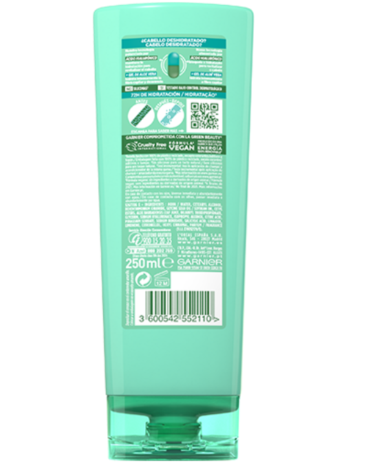 Fructis Aloe Hydrabomb es un acondicionador fortificante enriquecido con gel de aloe vera y glicerina vegetal de origen natural para hidratar sin apelmazar.