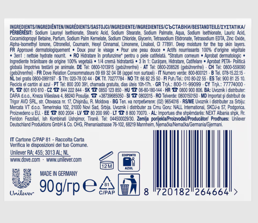 Dove jabón original para cara, cuerpo y manos combina una fórmula limpiadora delicada junto con ¼ de crema hidratante para suavizar e hidratar tu piel.